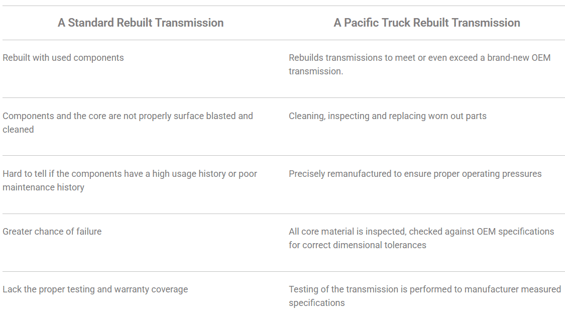 So what makes a rebuilt transmission from Pacific Truck a step above the rest?